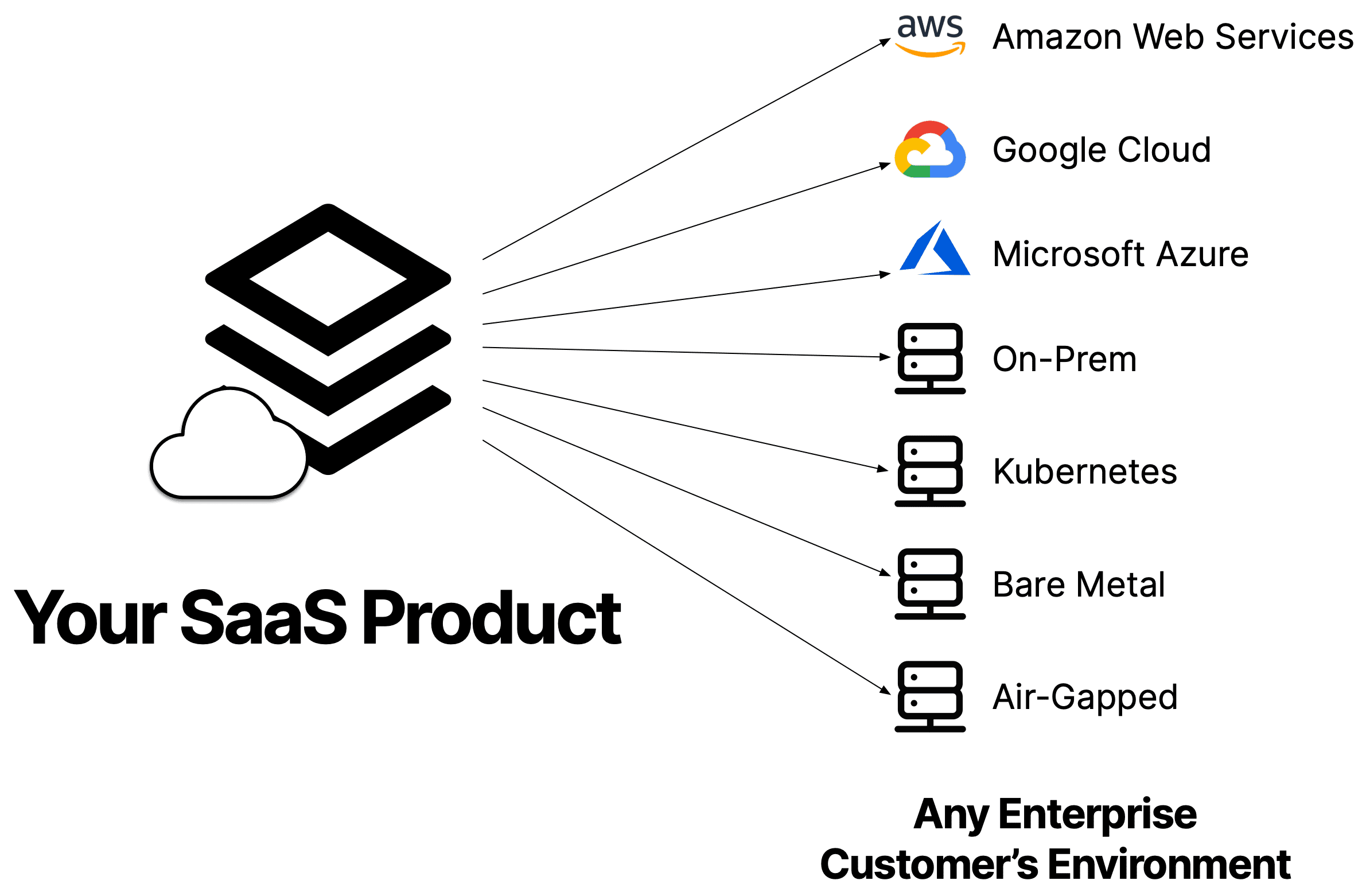 extends your existing app to deploy anywhere your customers need it. Make deploying and operating your product feel like SaaS and unlock new markets without the burden of complex bespoke engineering and operations.