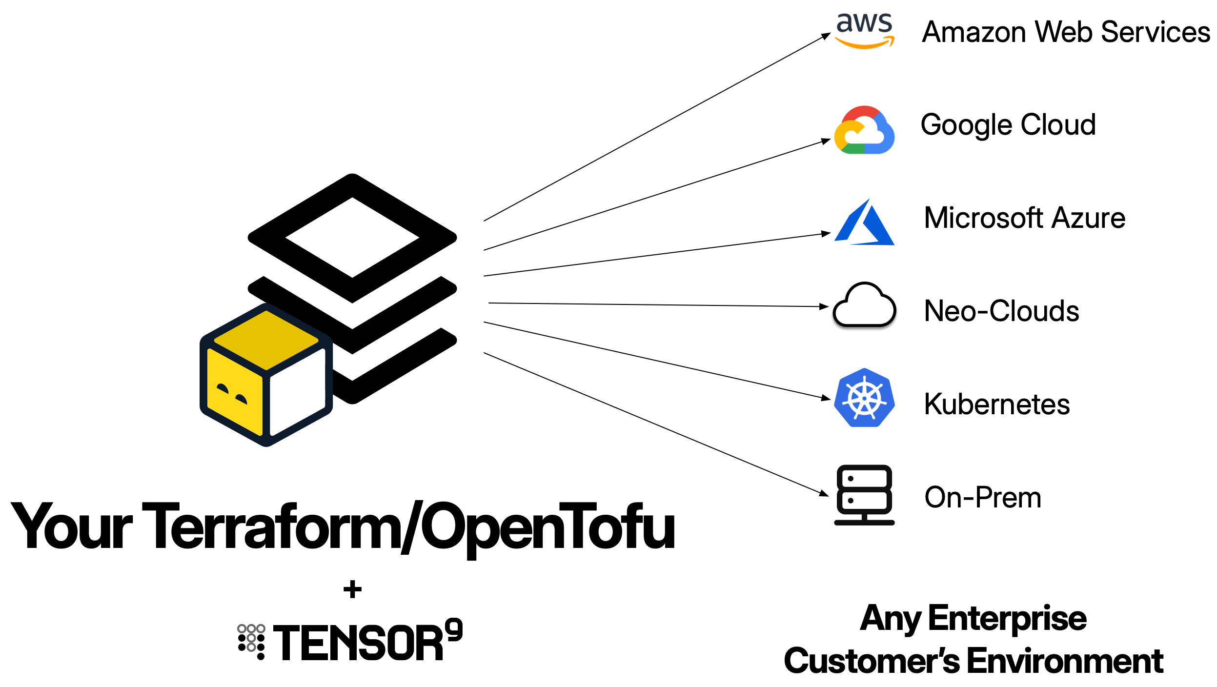 Tensor9 works by compiling your TF for each appliance your want to deploy to. So, your next step is to publish your TF to your Tensor9 control plane:s3://t9-ctrl-000001/your-stack.tf.tgz